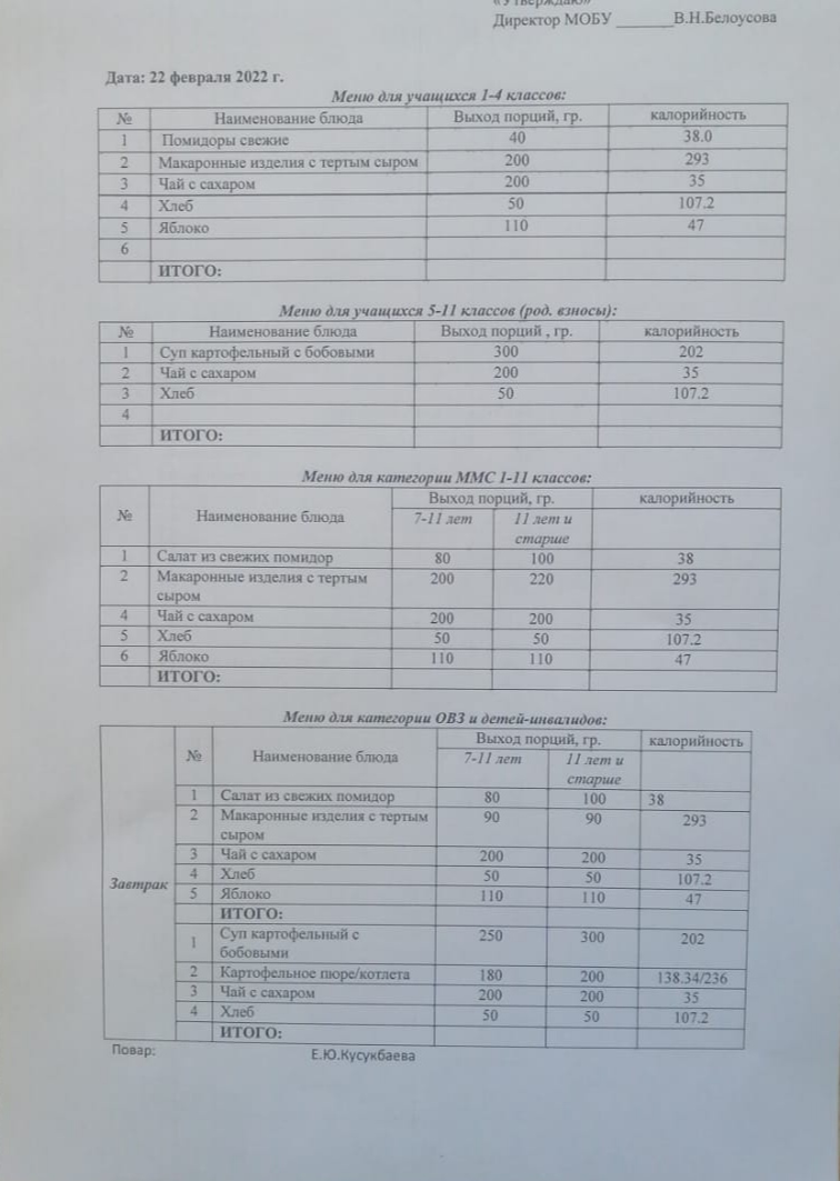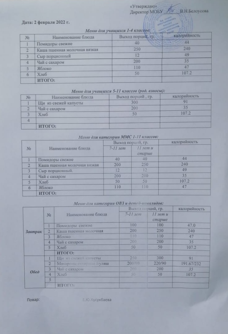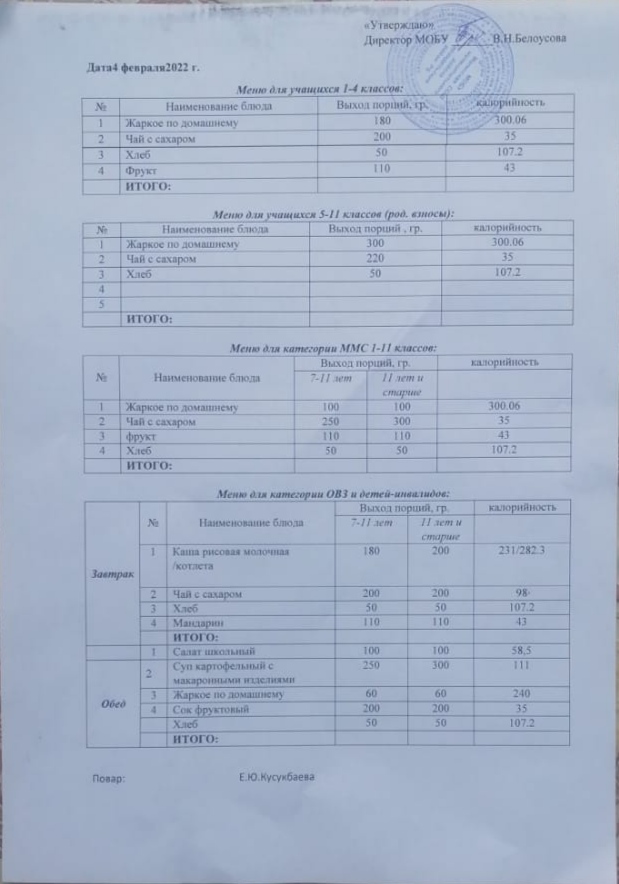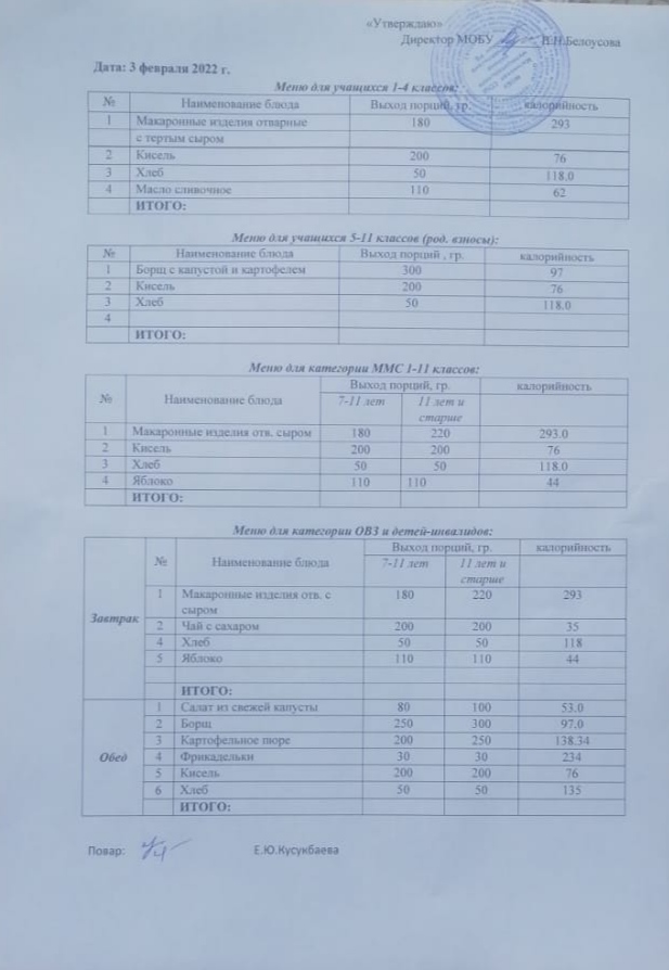 (Меню на 4 февраля)