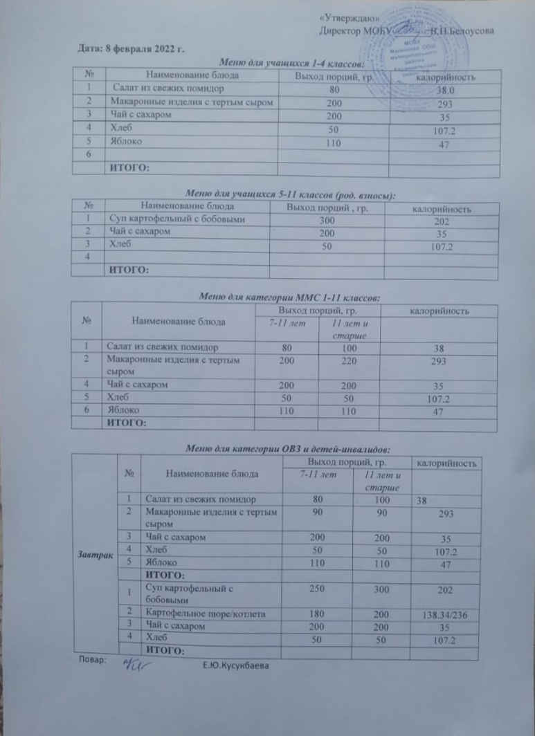 (Меню на 8 февраля)
