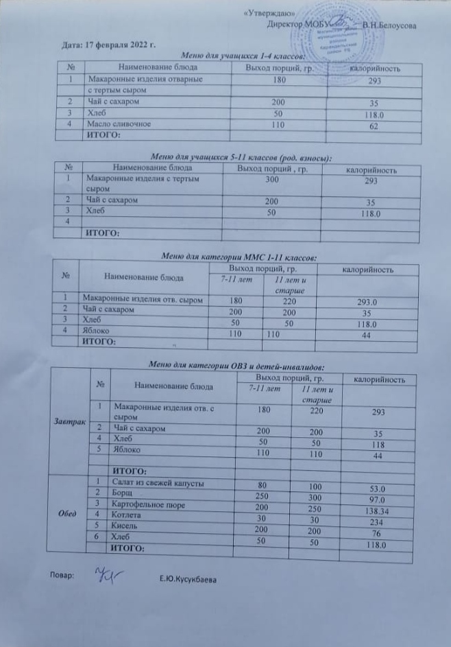 (Меню на 17 февраля)