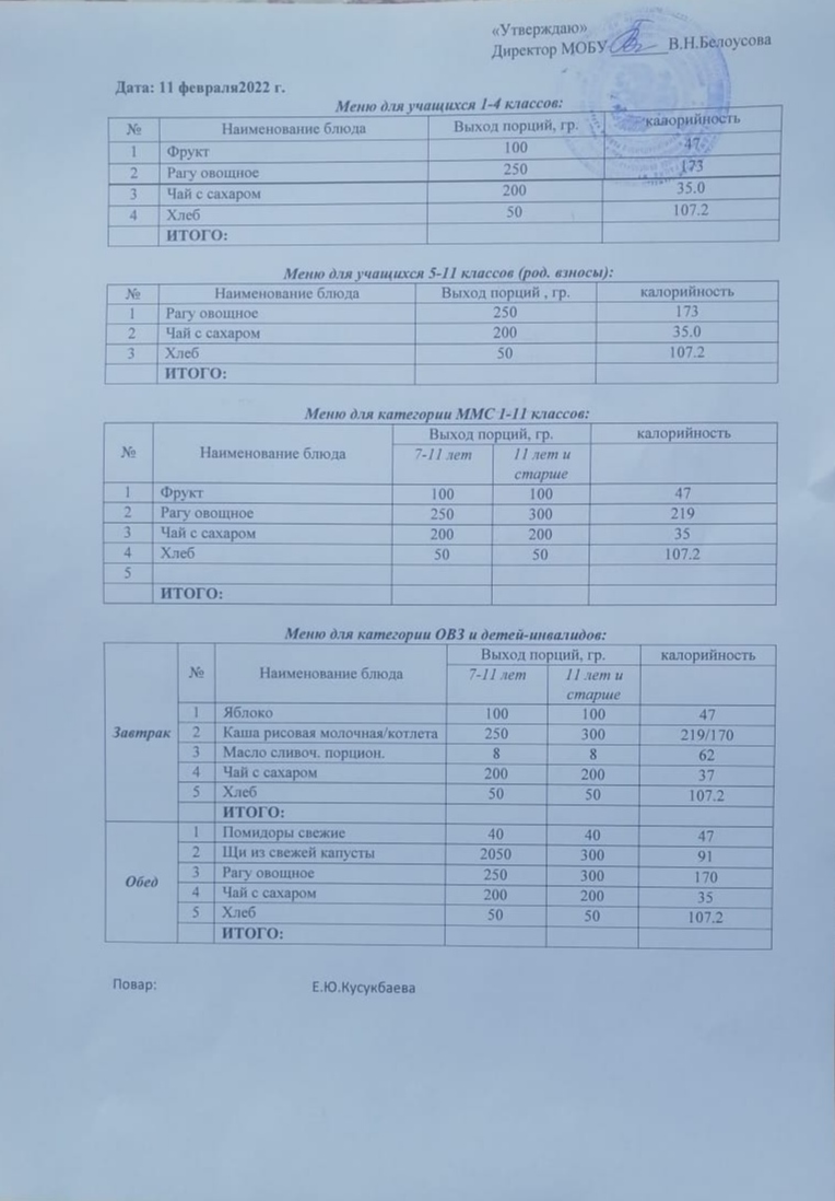 (Меню на 11 февраля)
