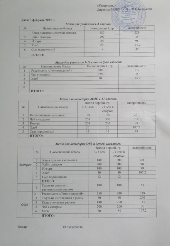 (Меню на 7 февраля)