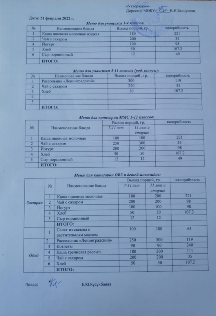 (Меню на 21 февраля)