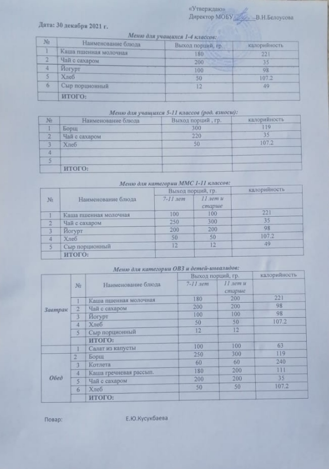 (Меню на 30 декабря)