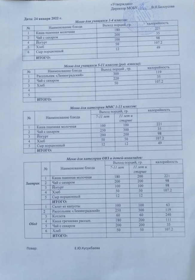 (Меню на 24 января)