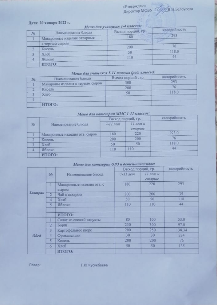 (Меню на 20 января)