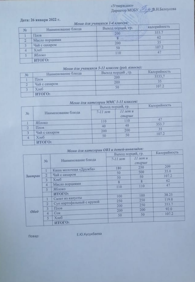 (Меню на 26 января)