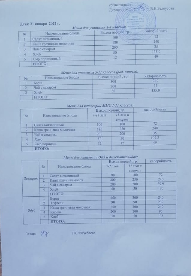 (Меню на 31 января)