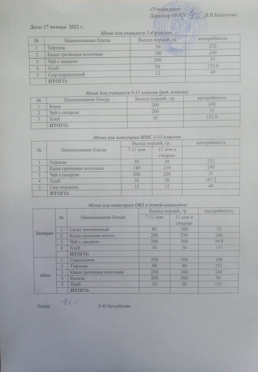 (Меню на 17 января)