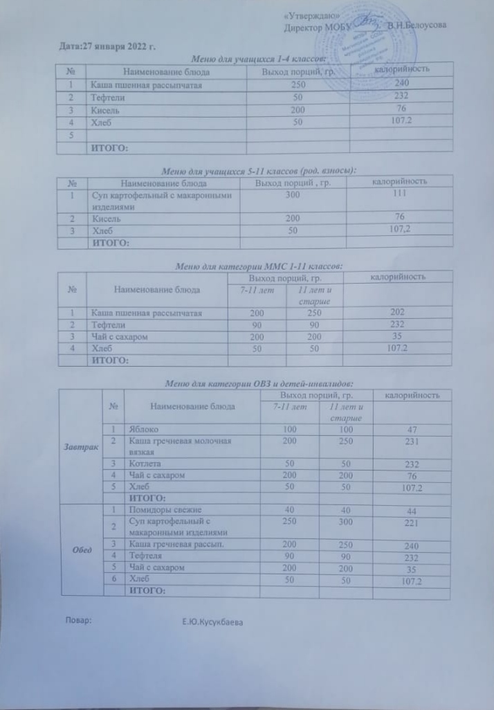 (Меню на 27 января)