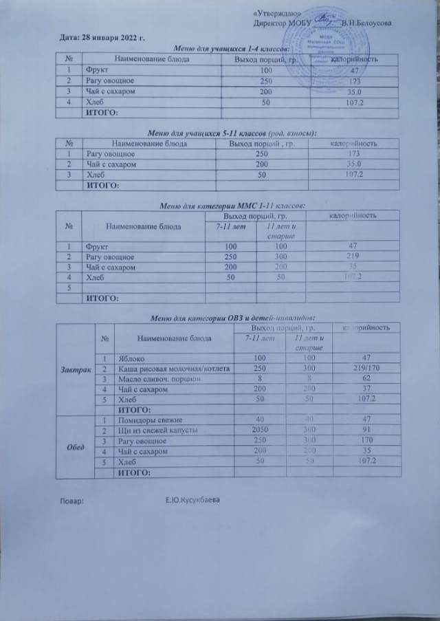 (Меню на 28 января)