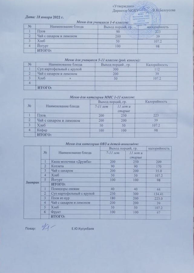 (Меню на 18 января)