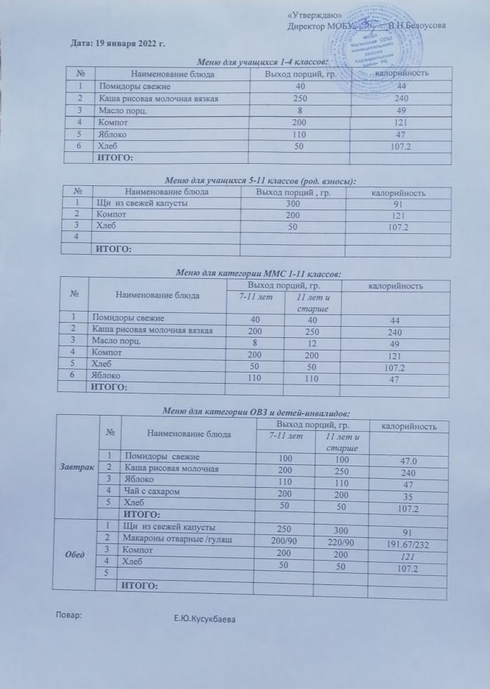 (Меню на 19 января)