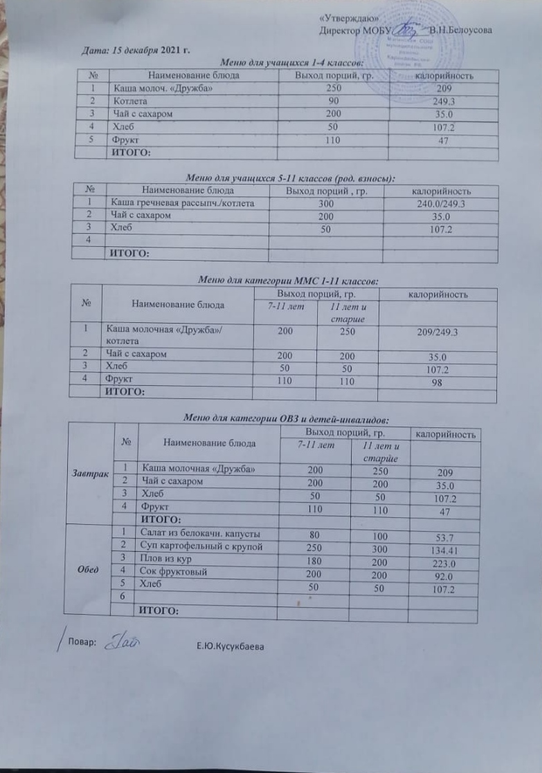 (Меню на 15 декабря)