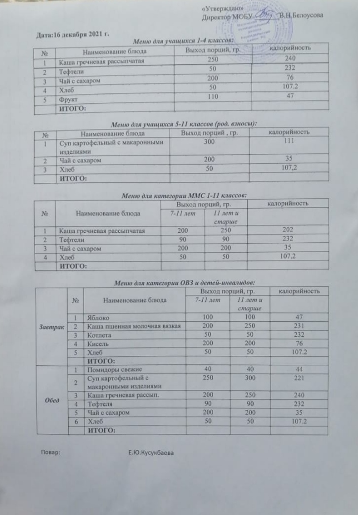 (Меню на 16 декабря)
