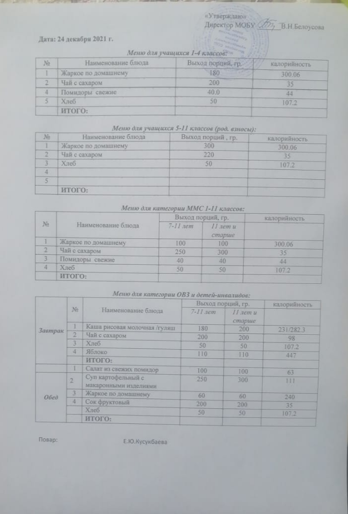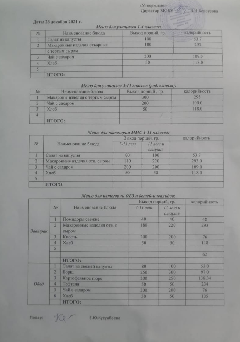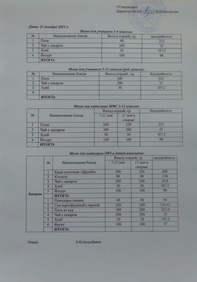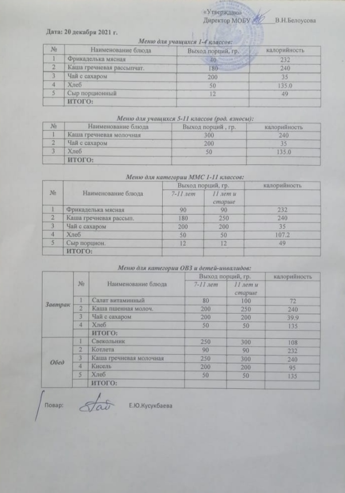 (Меню на 21 декабря)