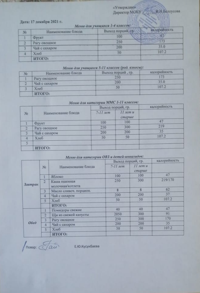 (Меню на 17 декабря)