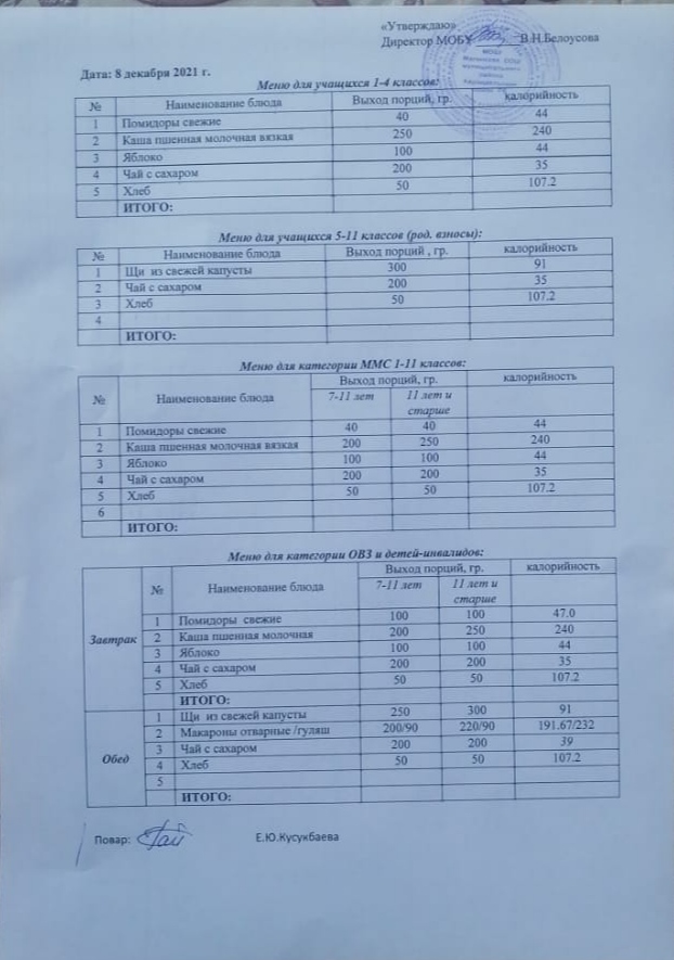 (Меню на 8 декабря)