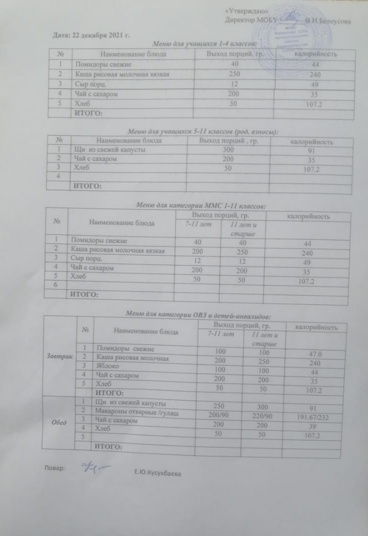 (Меню на 22 декабря)