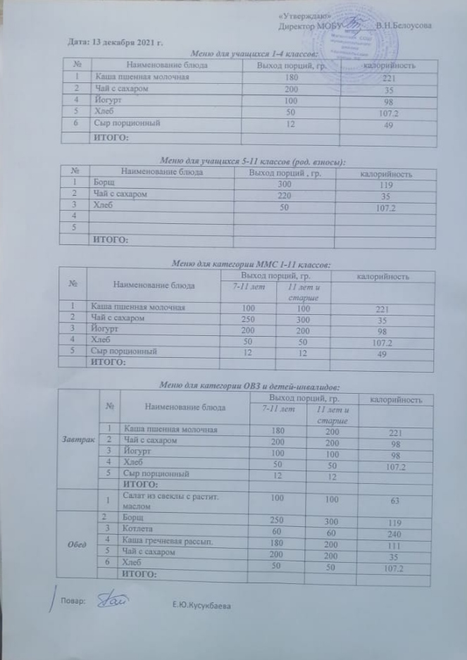 (Меню на 13 декабря)