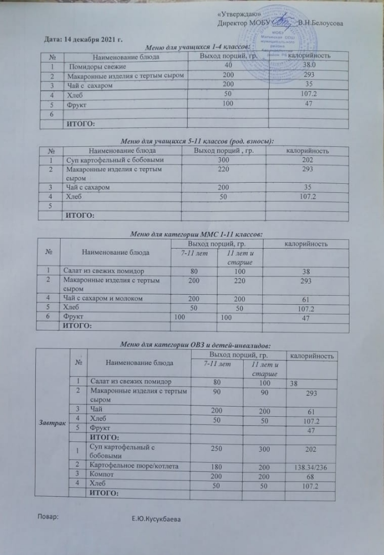 (Меню на 14 декабря)