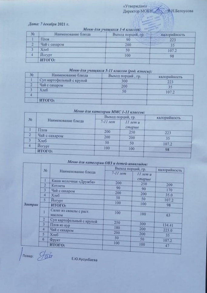 (Меню на 7 декабря)