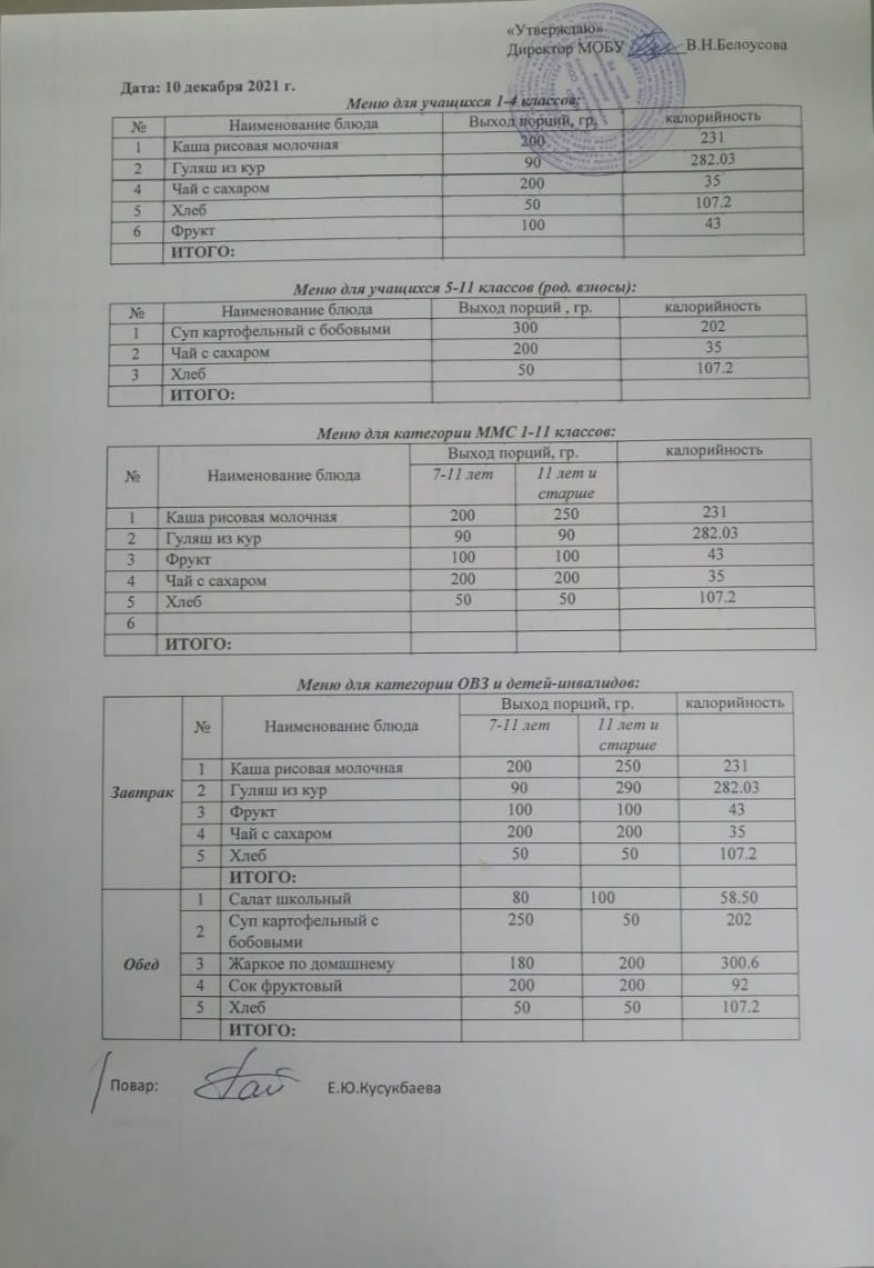 (Меню на 10 декабря)