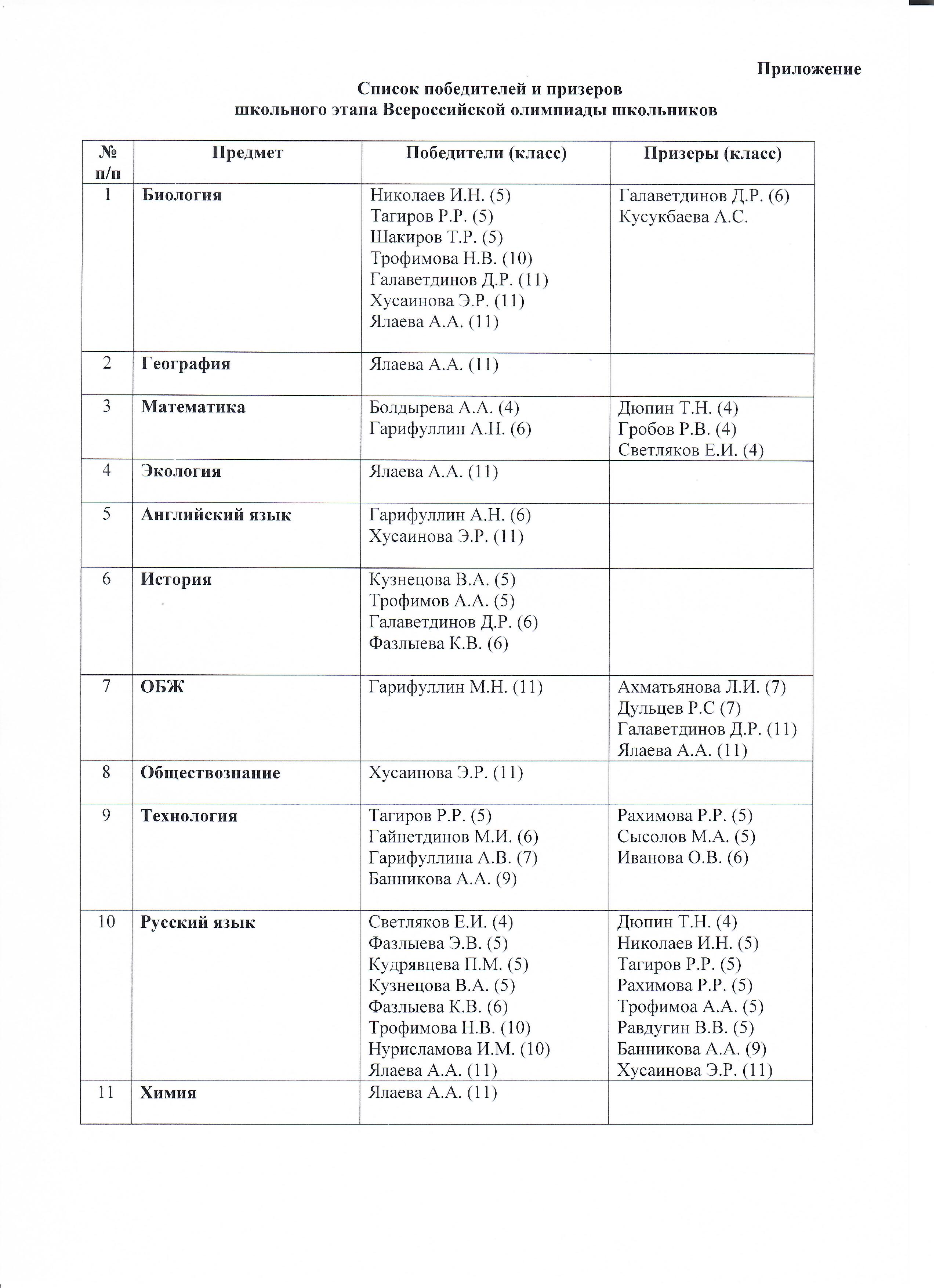 Приказ об итогах школьного этапа ВОШ